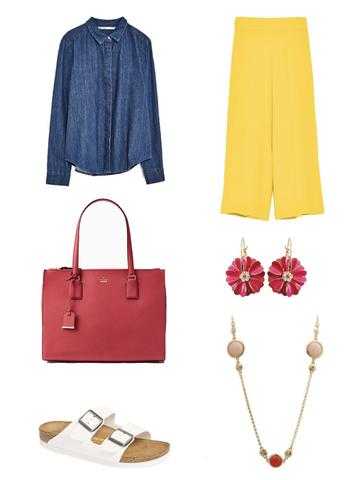It might be the weekend but you can still look Vogue ready with this Zara Denim Top with Frille Sleeves ($12.99), Zara High Waist Trousers ($35.99), Astara Flower Enamel Crystal Hoop Earrings ($89.95), Melina Necklace ($39.95), Arizona Birkenstock Sandal ($99.95) and Kate Spade Cameron Street Jensen Purse ($151.00)